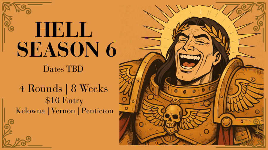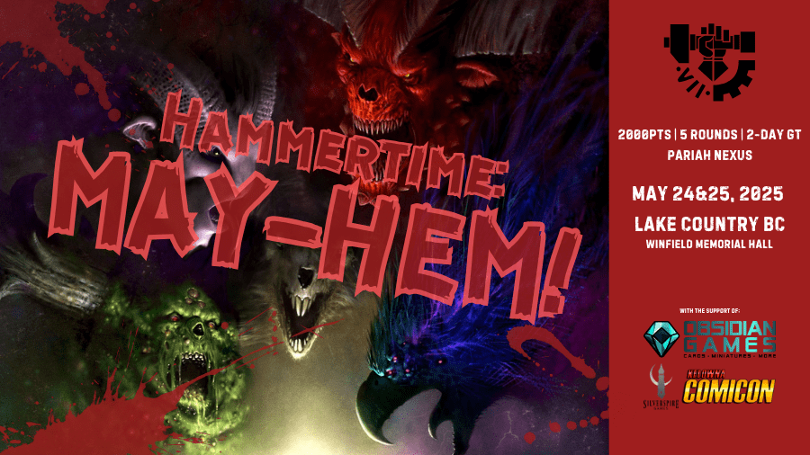 Hammertime has consistently run an RTT or GT at Kelowna ComiCon over the last couple of years. Unfortunately due to some space limitations and additional conflicts we’ve decided not to host an event this year. We’re in the process of planning another Summer 40k event (possibly another Doubles event). Keep your eyes peeled for updates.